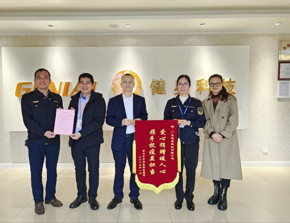 2023年1月,肇慶市市場監督管理局向健奧科技頒發愛心捐贈錦旗。