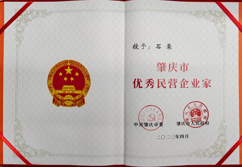 我司董事長石榮獲評為“”肇慶市優秀民營企業家”,這是對石榮在企業經營管理方面所作貢獻的認可。他踐行卓越績效的管理模式,重視員工培訓和發展,同時注重產品質量和客戶服務,為企業的發展奠定了堅實的基礎。
